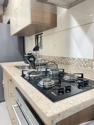 Com 60m², o imóvel se destaca por estar totalmente planejado, com móveis sob medida em todos os ambientes, oferecendo melhor organização, funcionalidade e um visual mais clean e bem resolvido para quem deseja morar com mais conforto ou investir em uma unidade pronta para uso.