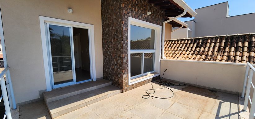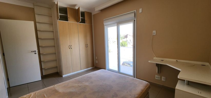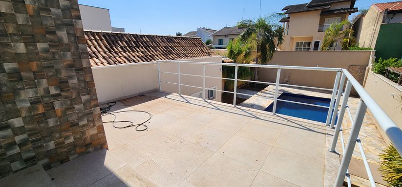 No piso superior, o imóvel conta com 3 dormitórios amplos, todos com sacadas privativas, além de uma sala de TV aconchegante e um escritório com vista para a piscina, proporcionando um espaço perfeito para trabalho ou estudos com privacidade e boa iluminação natural.