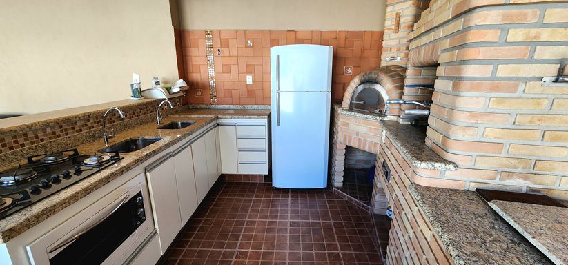 A área de lazer é um grande destaque, com piscina e um salão gourmet completo, equipado com churrasqueira, fogão, forno de pizza e fogão a lenha, ideal para receber amigos e familiares e criar momentos inesquecíveis.