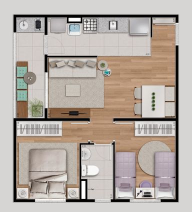 Apartamentos térreos com 49m², 2 dormitórios, varanda gourmet e lazer completo de resort para viver com mais conforto, segurança e qualidade de vida.
