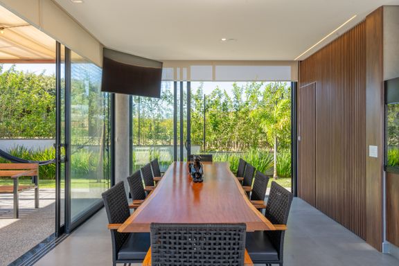 Próxima da capital paulista, a apenas 15 minutos de Campinas e 8 minutos de Holambra, esta casa no Tamboré Jaguariúna é um verdadeiro refúgio para quem busca qualidade de vida, sofisticação e contato com a natureza.