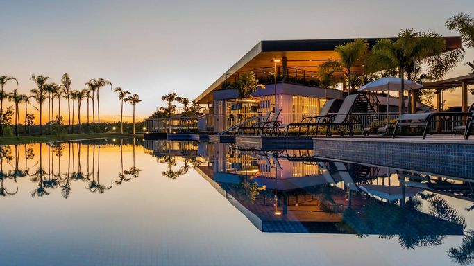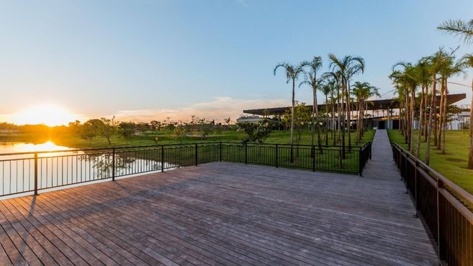 Infraestrutura completa com quadras de tênis em saibro, quadras de futebol e beach tênis, piscinas, academia, spa, brinquedoteca, pomares, trilhas e lago com deck. Segurança, privacidade e lazer em um só lugar.
